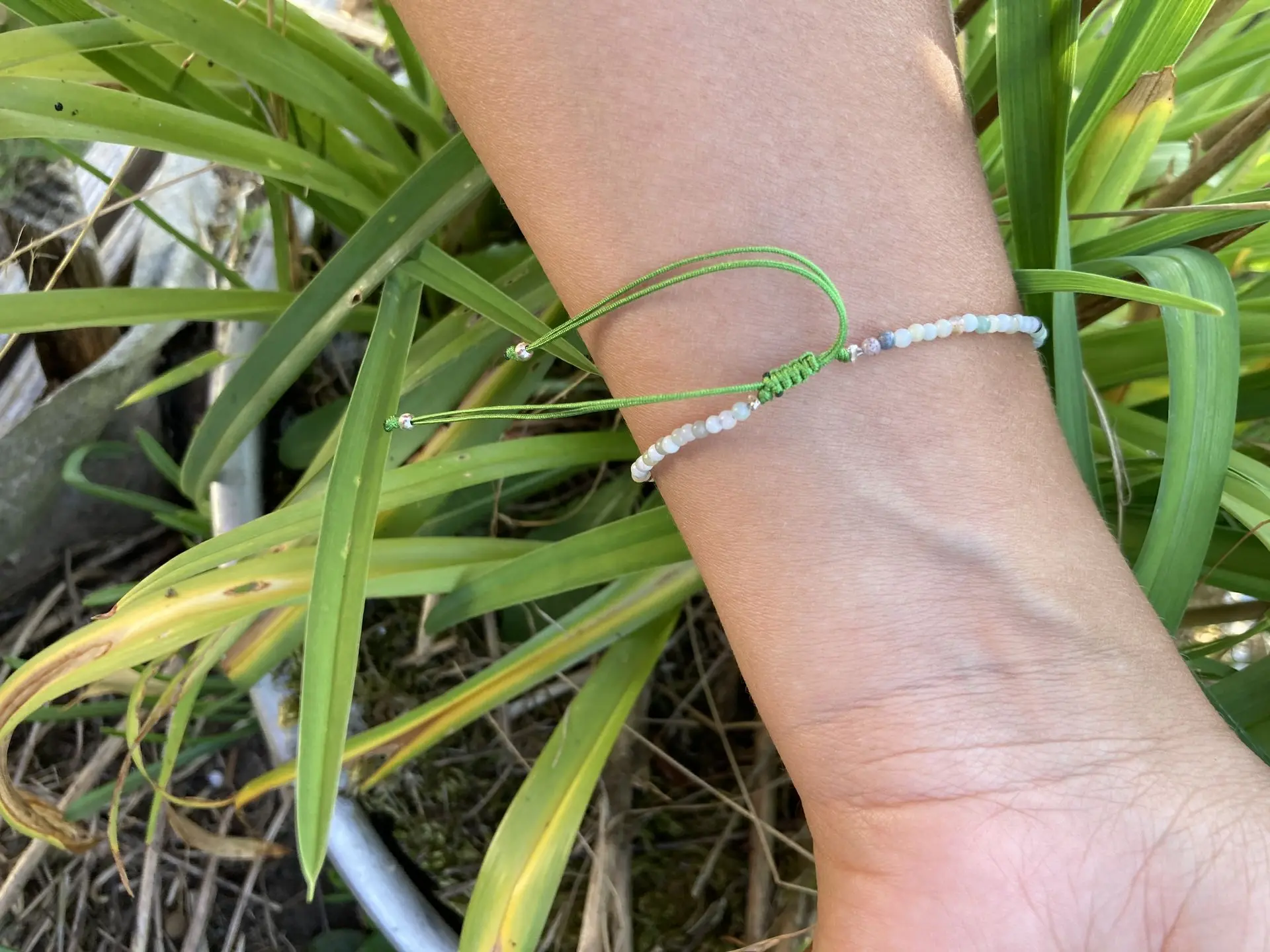 Bracelet ajustable, pierre semi-précieuse, jaspe verte